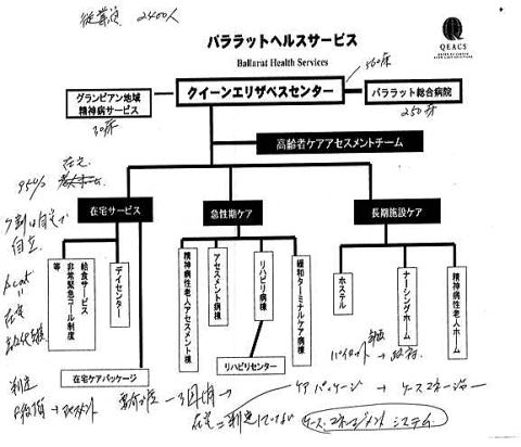 提供しているサービスとしては、高齢者ケアアセスメントチーム、在宅ケア、長期満在用老人施設、急性期病棟、そして250床を有するバララット総合病院。征業員数2500人。福祉医学の世界では注目されて久しく、その高度な医療技術と評判の高いケアシステム、いわばハードとソフトの両面を学びに海外からやってくる医学者や福祉関係者が絶えない。