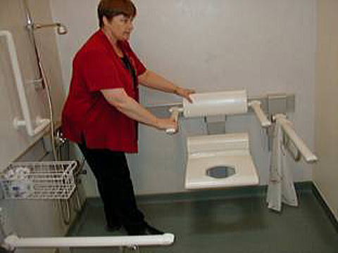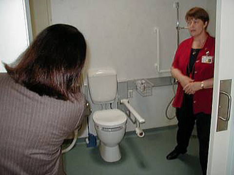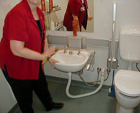 例えば、右半身不随の患者の部屋のシャワーは、左側にすべての調整が行えるスイッチ